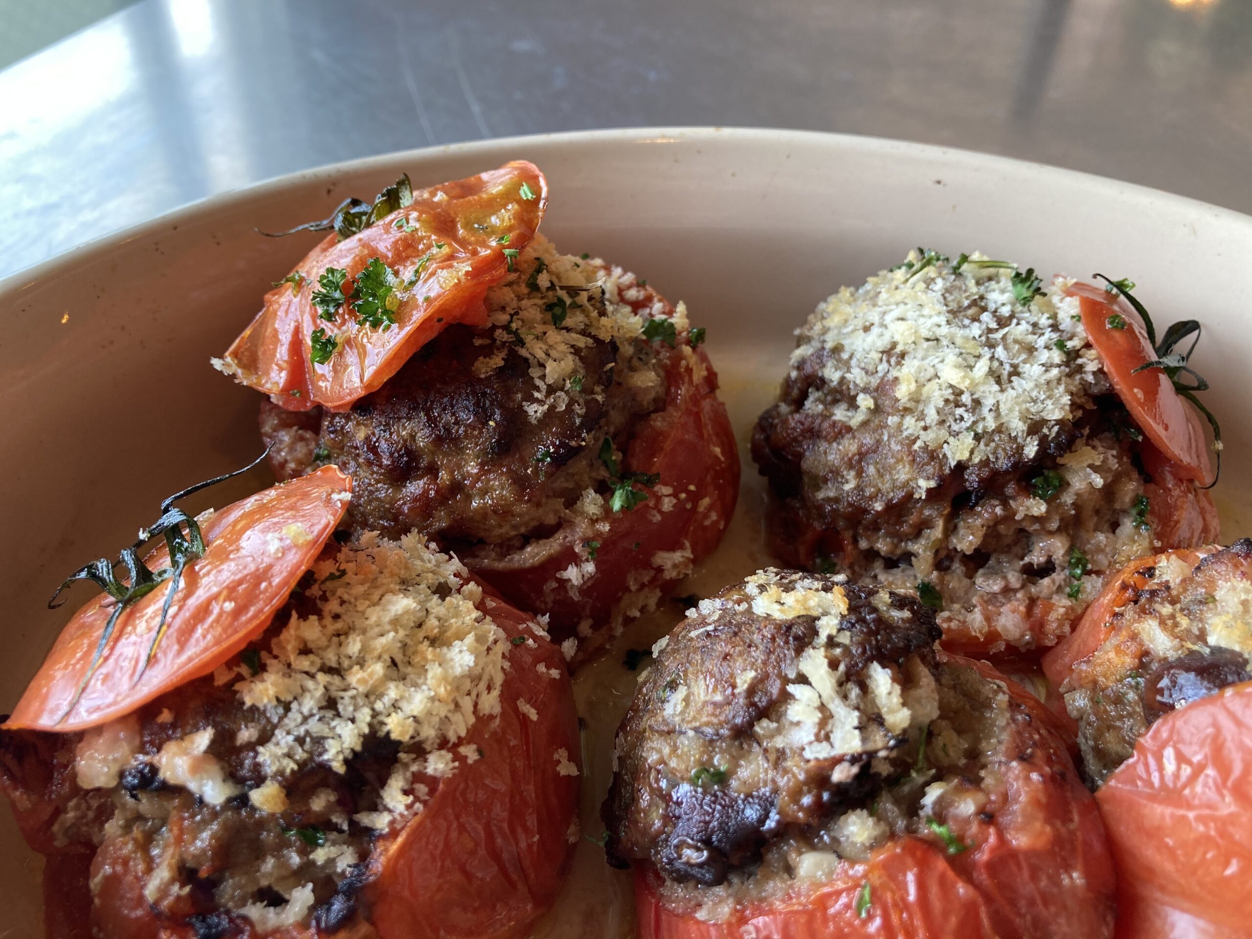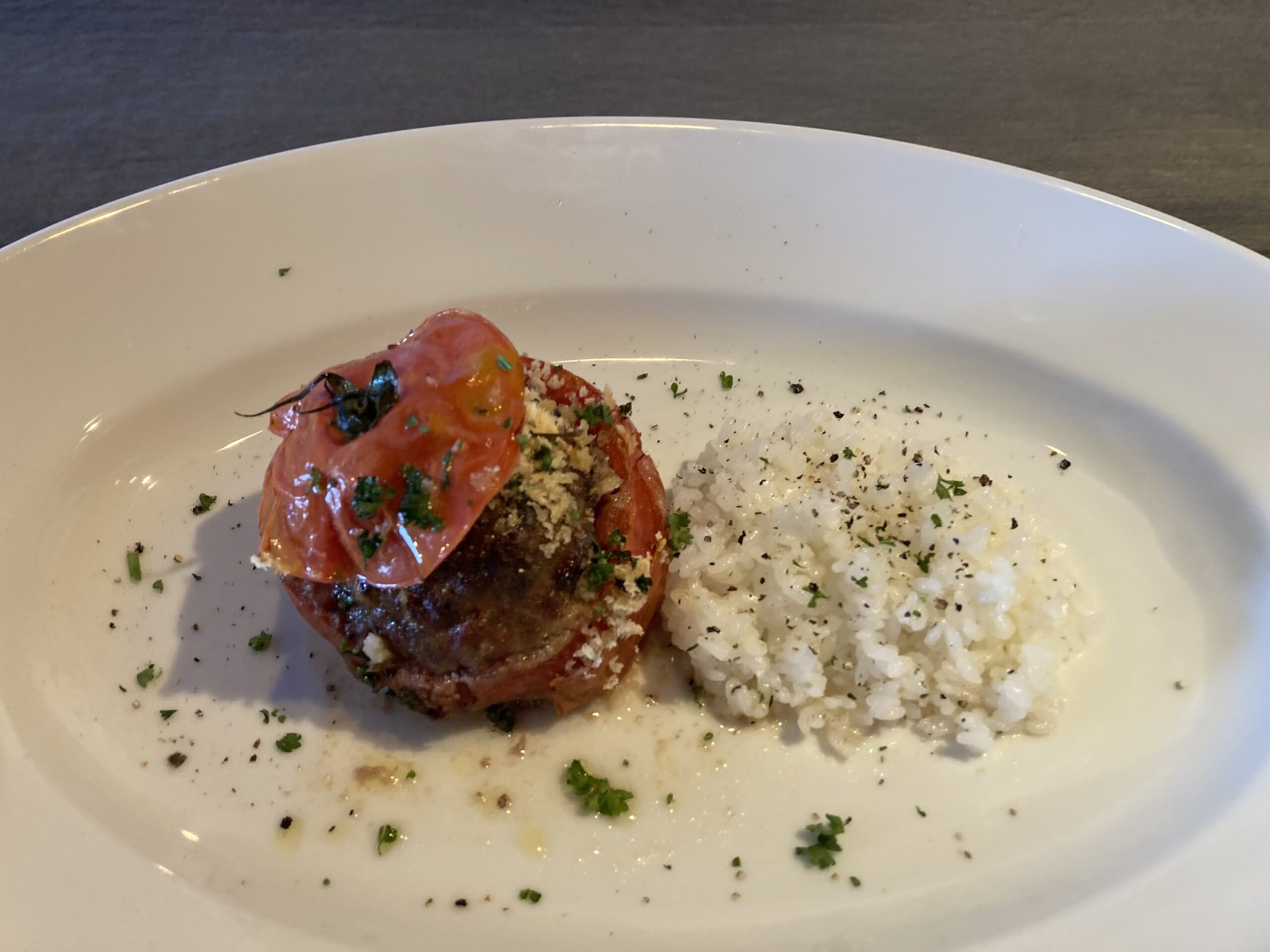 イワシのマリネ、ナスのキャビア添え、パプリカのソース