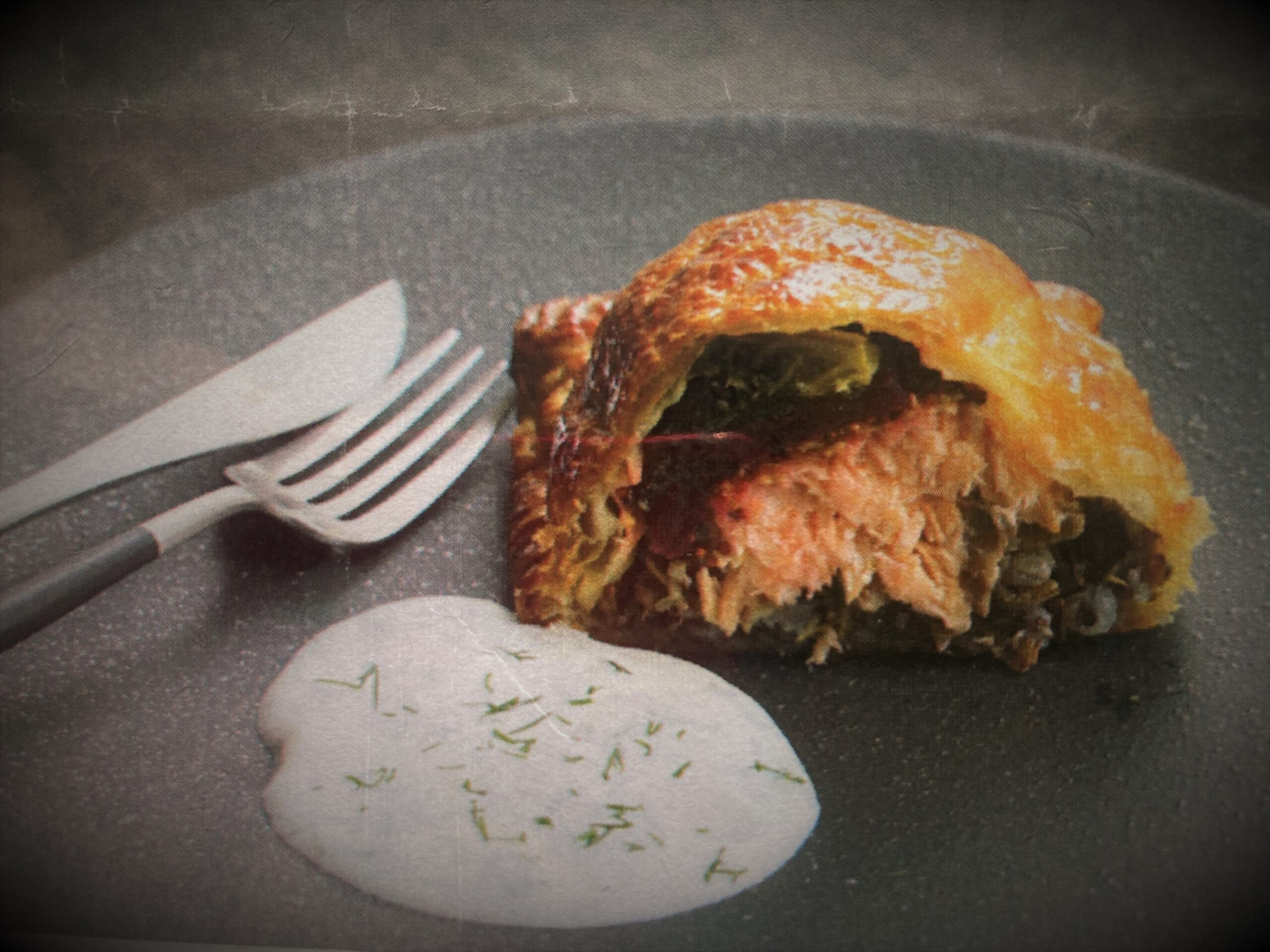 pie wrap salmon and kale(サーモン、ケール、ワイルドライスのパイ包み)